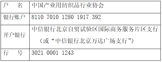 1.协会副会长、常务理事,协会各分会会长、秘书长原则上要求本人参会;如本人因故无法到会,请指派单位主要负责人参会。2.理事单位、产业集群、检测中心、研发中心等单位安排相关负责人参会。3.参会代表往返交通、住宿费用自理。需要住宿的代表请自行联系酒店预定房间,并告知“中产协理事会”,可享受会议协议价。预定方式如下:(1)酒店联系人及手机:郭 畅183614985681.副会长、常务理事,产业集群、研发中心和检测中心等单位免收1名代表会务费,增加人员按理事单位标准收费。2.理事单位1000元/人,会员单位1500元/人。3.参会代表可提前将会务费汇至以下账号,并在汇款时注明“理事会”,以便查询。