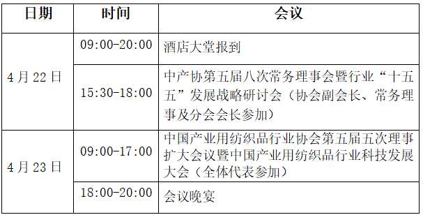 为了科学分析产业用纺织品行业发展形势,研究当前行业重点任务和年度主要工作,扎实推动科技创新和产业创新深度融合,加快发展行业新质生产力,现定于2025年4月22-23日在江苏宿迁召开“中国产业用纺织品行业协会第五届五次理事扩大会议暨第三届中国产业用纺织品行业科技发展大会”,同期召开中产协第五届八次常务理事会。现将有关事项通知如下: