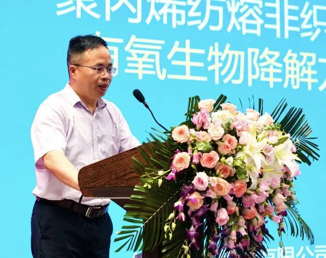 传化智联股份有限公司产业用纺织品事业部副总经理王进伟作“聚丙烯无纺布生物降解解决方案”主题报告,介绍了生物降解塑料定义、降解机理、生物降解材料的工业标准规范等,并通过多种分析测试报告展示样品材料的生物降解度。据介绍,经过ISO 14855-1:2012 180天测试后,熔喷无纺布样品材料生物降解度为92.7%,纺粘无纺布样品材料生物降解度为80.2%,继续降解至225天,生物降解度为90.3%。