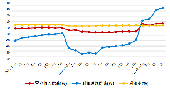 当前,全球制造业延续温和复苏趋势,对全球经济增长预期产生积极影响;国内宏观经济数据稳中趋缓,“供强需弱”特征依然较为明显。2024年1-5月,产业用纺织品行业工业增加值增势持续,行业的生产和销售保持了较好的回暖态势。根据协会调研,2024年上半年产业用纺织品行业的景气指数为67.1,处于景气区间,较2023年同期上升15.4。生产方面,根据国家统计局数据,1-5月规模以上企业的非织造布产量同比增长13%;规模以上企业的帘子布产量同比增长14%,增速受前五个月国内汽车产销增速放缓影响小幅收窄。经济效益方面,根据国家统计局数据,1-5月产业用纺织品行业经济向好态势持续巩固,规模以上企业的营业收入和利润总额分别同比增长6.9%和32.1%,营业利润率为3.9%,同比增加0.7个百分点。2024年1-5月产业用纺织品行业主要经济指标增速