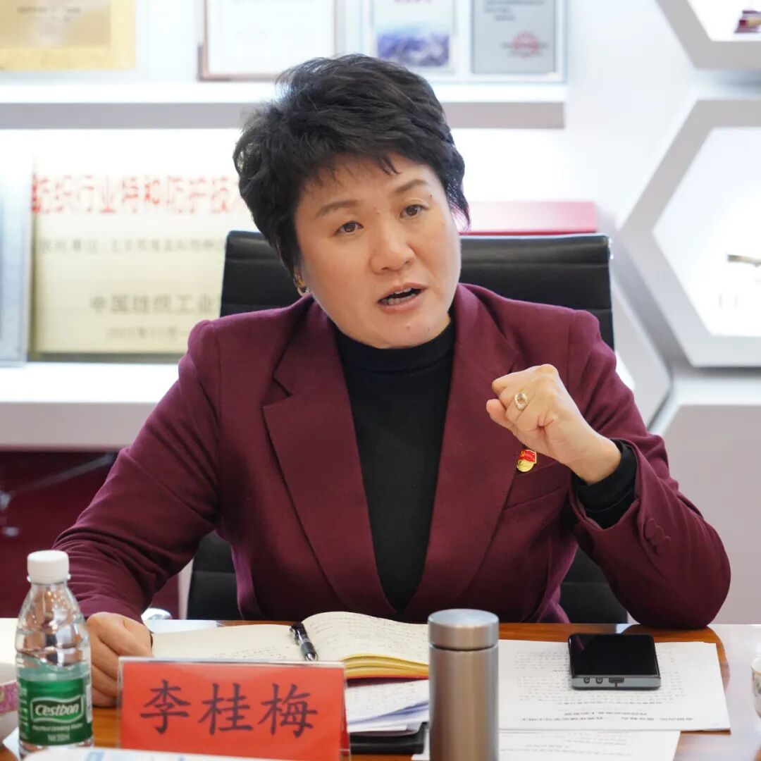 李桂梅以“筑室强基 实干兴会 以高质量党建促高质量发展”为题介绍了产业用纺织品行业在国民经济发展中的重要作用以及协会的基本情况、支部“五经五纬”工作法及青年工作重点、支部在加强行业党建工作方面的探索与思考。