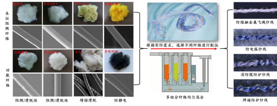 针对高强高热应用环境的不同要求,项目通过建立不同性能纤维复配纱线性能的数据库,并基于多元化结构数据开发了多组分纤维的自适应采样加权灰色近优综合评价系统,使得热防护产品的开发周期缩短了50%以上;开发出了高性能混纺纱线低比例纤维均匀分布调控技术与装备,可有效解决多组份纤维复合纱线中小比例纤维易团聚、难以混匀的行业共性技术难题,实现了低成本、高舒适性、高品质阻燃纱线的规模化制备。