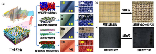 针对不同的热防护场景,项目通过解析冶金、电力、焊接、消防场景下的热防护机理,建立了特定热环境下基于纱线交织结构的织物传热数值模型,揭示织物组织结构及纱线性能参数对其传热性能的影响规律,为开发新型热防护面料提供理论支撑;同时,创制了特种作业下的舒适型高防护等级热响应双层织物,其热防护值是传统叠层防护织物的2倍;研发出的高效无卤膨胀型阻燃剂并对织物表层进行阻燃整理,突破了传统阻燃整理剂恶化织物透气透湿性能的技术璧垒。